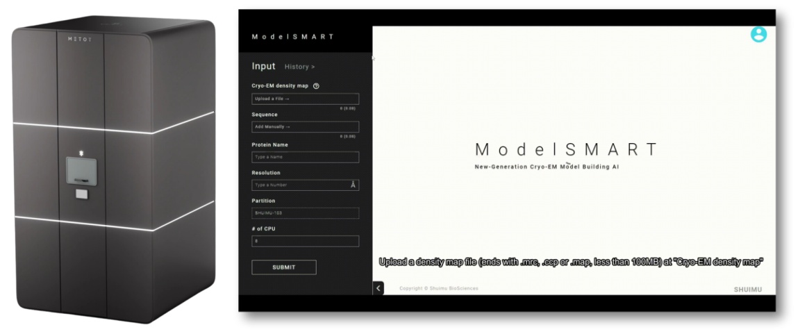 Shuimu Biosciences Next-Generation AI+ Cryo-EM (Left); SMART Software Interface Display (Right)